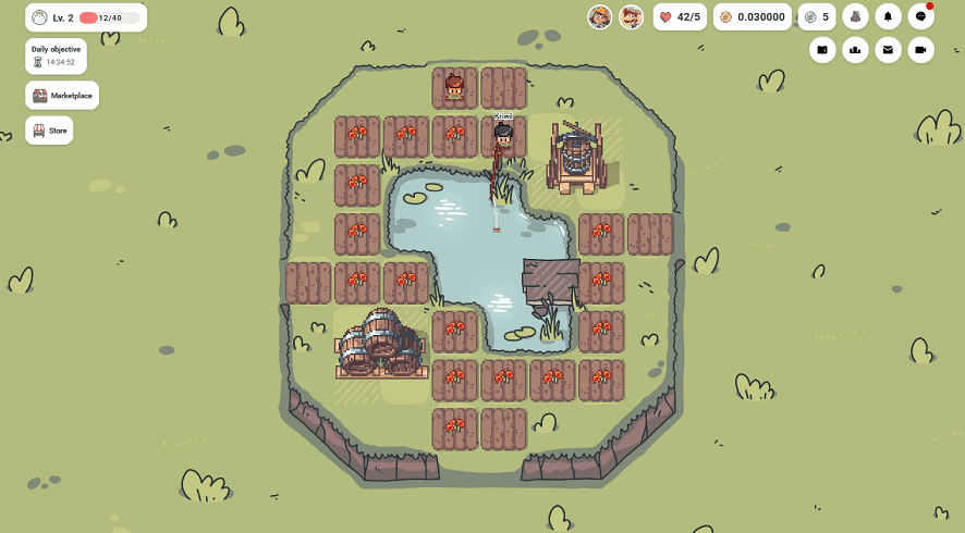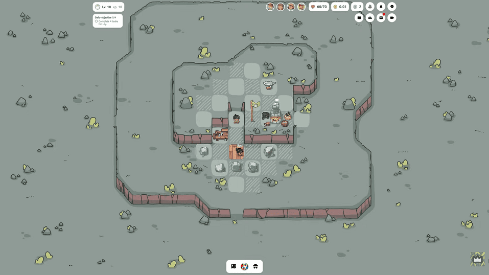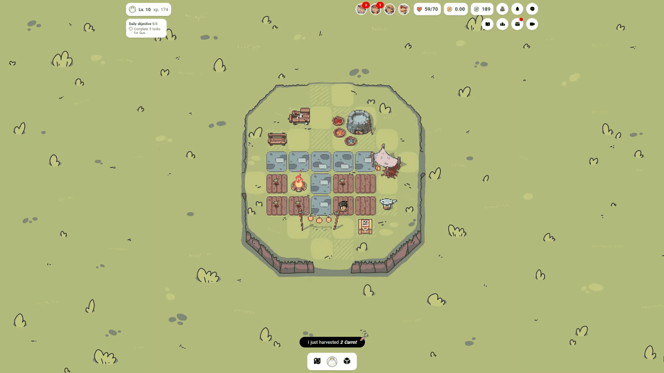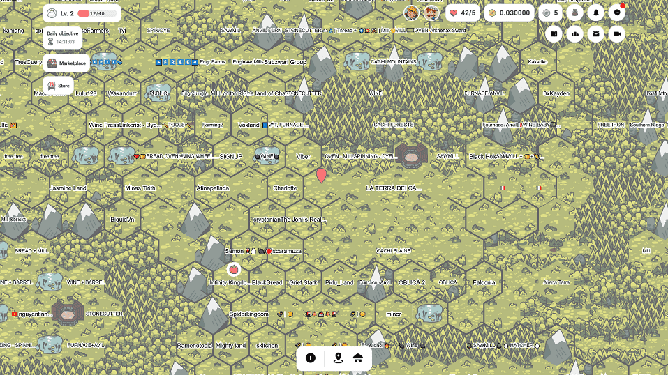 - Kingdom Creation: Players establish and grow their own kingdoms by claiming and connecting tiles. Each kingdom can be developed through construction, farming, and social collaboration.